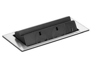The Evoline BackFlip sits nearly flush on a surface. At a touch of a finger, it turns 180 degrees to reveal two power sockets and a USB charger. With a total installation height of just 53mm, the BackFlip can be fitted above most drawers. Perfect to use on custom desks.