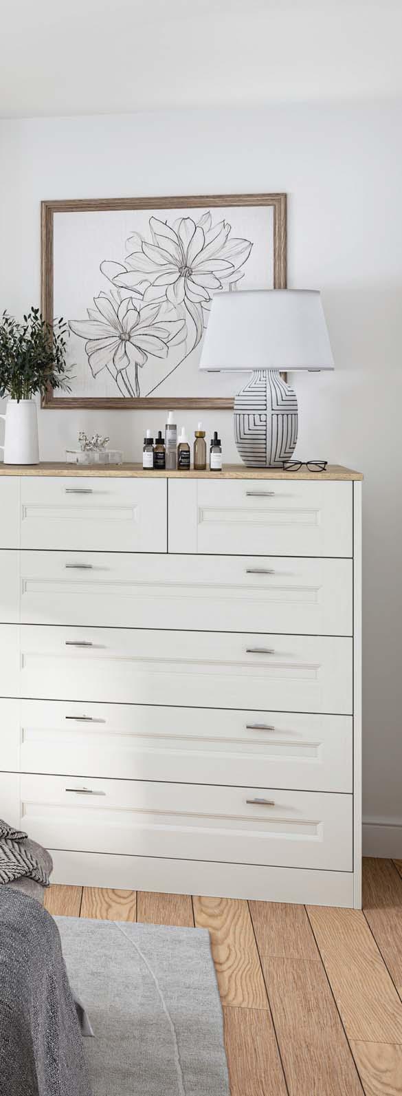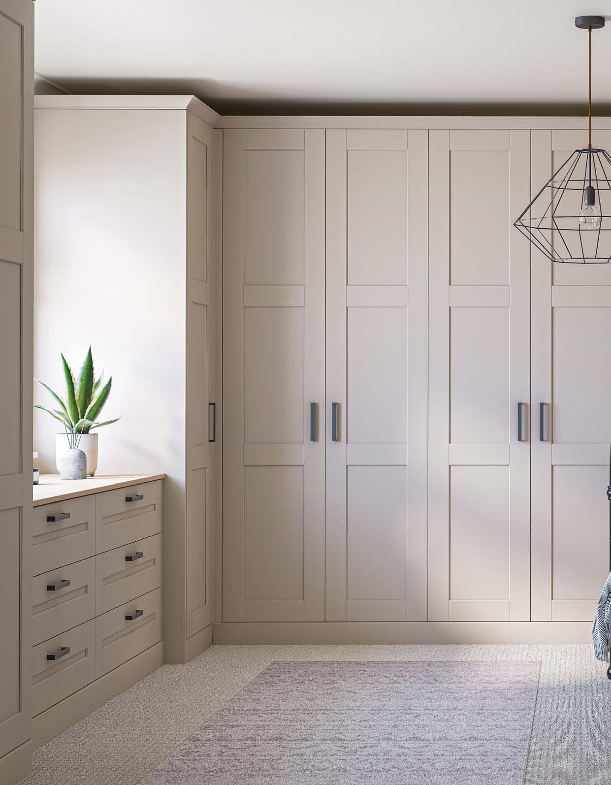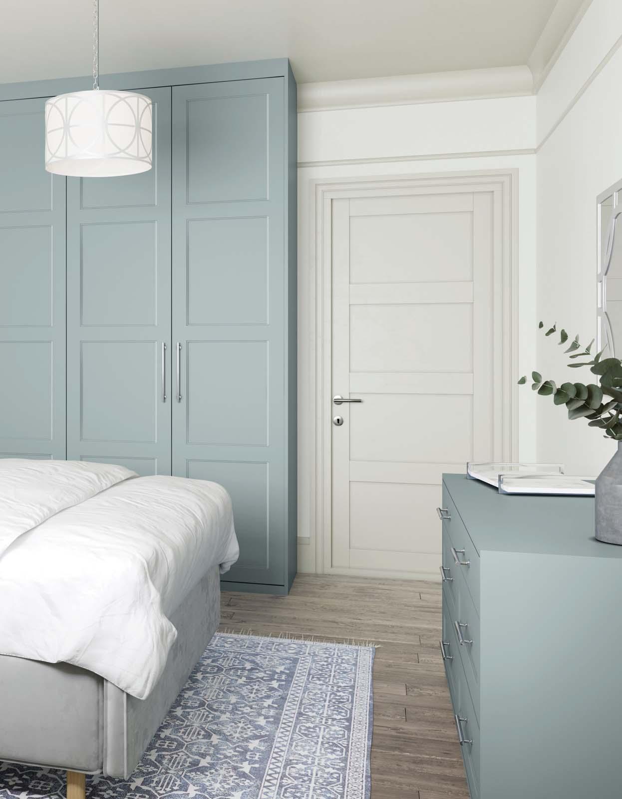 This simply elegant Shaker door features a frame with modern proportions, a distinctive chamfer detail and a textured woodgrain effect, perfect for creating a bedroom look that will never grow old.