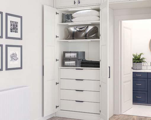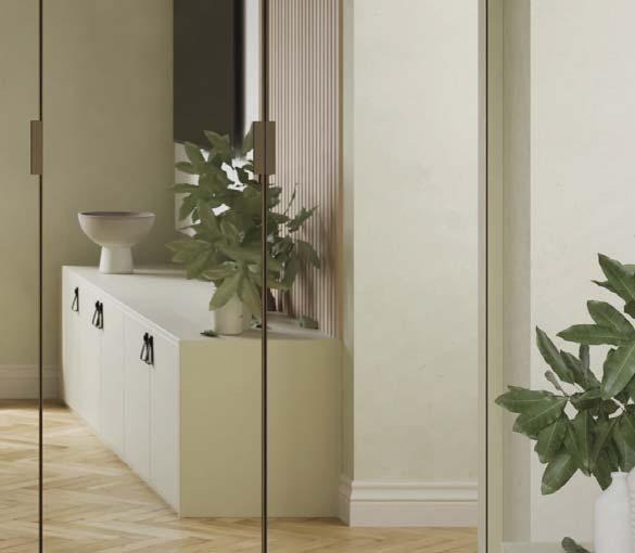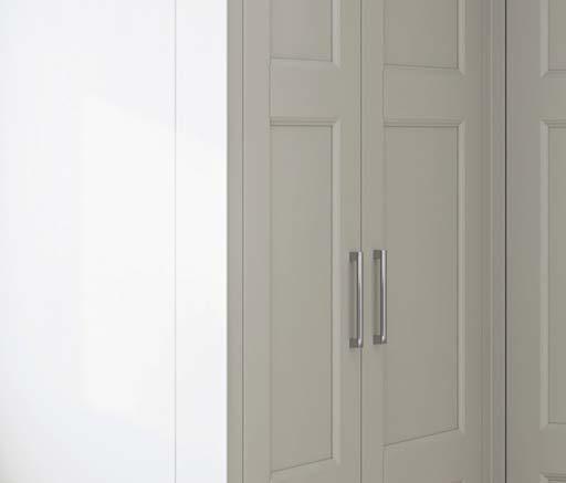 Whether your home has impressively high ceilings, or a quaint cottage footprint, a sliding wardrobe is the perfect solution to maximise and utilise space for all your storage needs. With an extensive range of glass, satin glass, mirror and panel options, your sliding wardrobe can be tailored to perfectly suit your bedroom style, and with our flexible YouK internal shelving solution (see page 67), your storage can be personalised to truly fit your requirements.