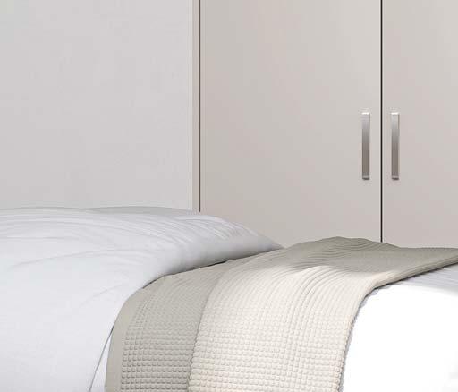 Minimalist and un-complicated in design, the pure, linear aesthetic of Unity enables it to adapt to any space with true flexibility. Whether your style is effortlessly simplistic, or sophisticated and full of character, select from a wide and varied range of over 50 finishes including lustrous gloss, smooth supermatt, distinctive metallic and stylish woodgrain finishes, to bring your bedroom vision to life. Further customise your look with added edging options. Colour finishes can be found on page 44.