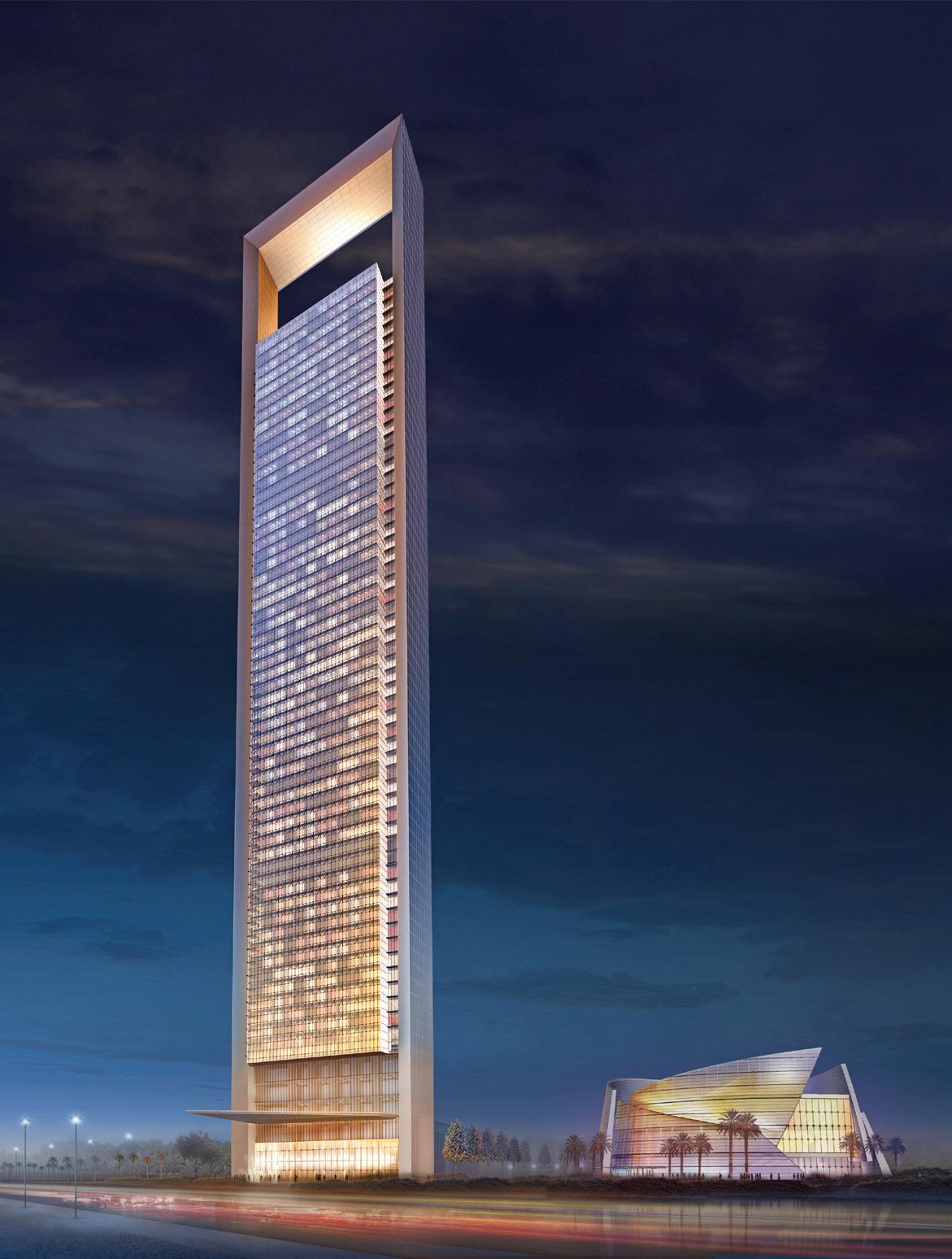 contain abstract references to regional and cultural influences. The Tower base rises upward in a series of steps providing a graceful transition as the structure ascends.