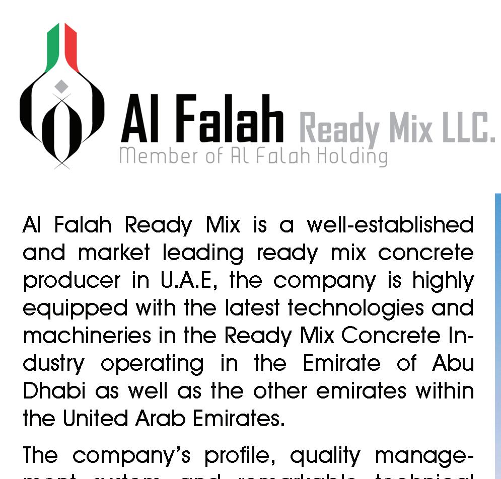 formulated PC admixtures to enable the concrete to be pumped from ground level to heights around 330m. The concrete had a very low water / cement ratio of 0.27 and was expected to achieve the required specified strengths at 28 days after placing in the formwork. The client, ADNOC and an equally high demanding company such as Six Construct made this project challenging with over 150,000 m³ of both C95 and C80 concretes resulting in an outstanding addition to the Abu Dhabi skyline.