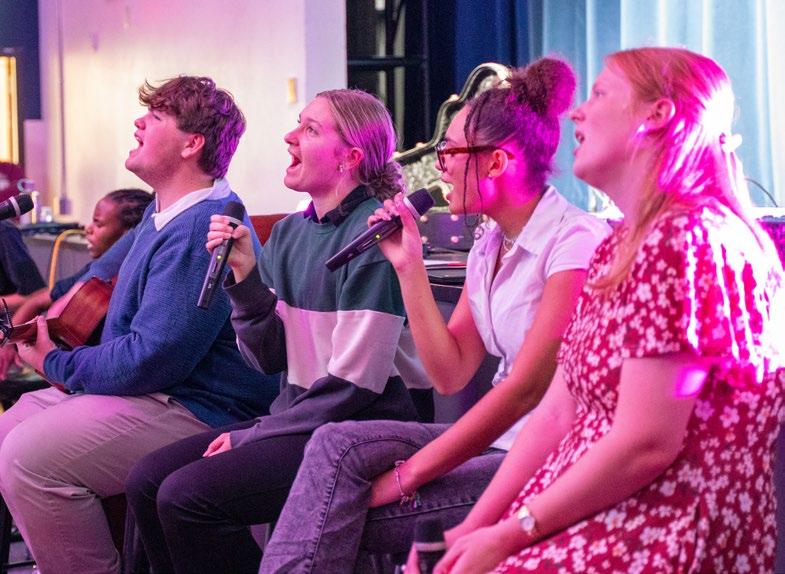 On the last Tuesday of each month, students gather for the muchanticipated Chapel Praise time. “It’s beautiful how the Spirit works. It is a time of worship, where we can flow into whatever songs God puts on our hearts, and we try to sense what he is trying to teach us.” John reflects.