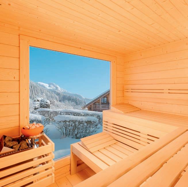 Eine moderne Gartensauna für besondere Ansprüche. Die Außenverkleidung kann wahlweise mit LärcheFassadenprofilen oder witterungsbeständigen HPL-Platten ausgeführt werden. Die Außenwände sind ca. 150 mm stark und er-möglichen einen energiesparenden Saunabetrieb.