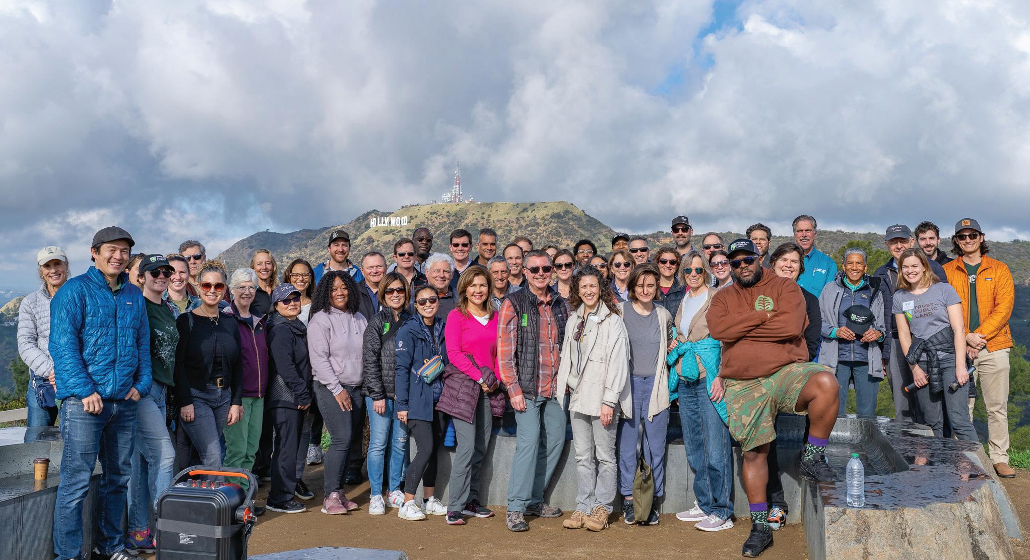 California Advisory Board hike to the Tiffany Overlook with views of Cahuenga Peak in Los Angeles. In 2010, TPL led the campaign to Save the Peak and protect the viewshed of the iconic Hollywood Sign.