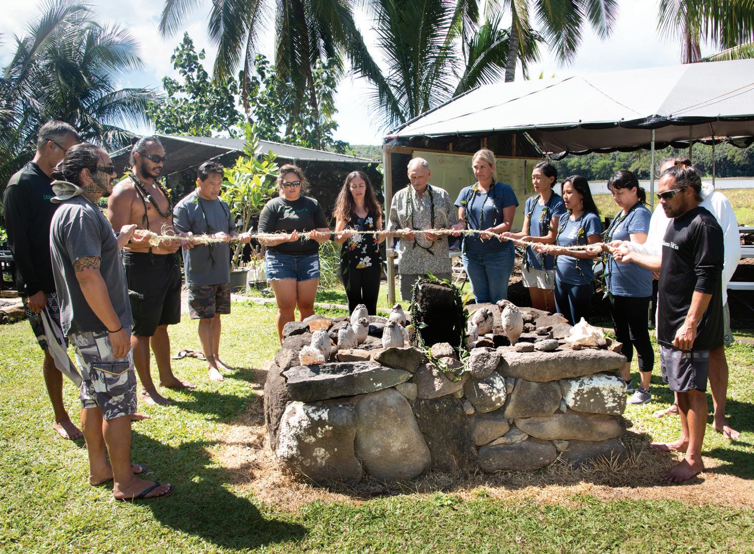 Mālama Hulē‘ia and TPL held a ceremony to honor the protection of Alakoko Fishpond, the largest remaining fishpond on Kaua‘i. Community members harvested the traditional plant ahu‘awa (a type of sedge/reed plant) from the loko i‘a (fishpond), processed it, and made cordage as an offering while sharing their vision for Alakoko’s future. Each person’s small piece of cordage was braided into a longer, thicker piece of cordage, symbolizing the many threads, connections, and contributions of all of the project partners. The purchase and permanent protection of the property was made possible through a charitable gift from the Chan Zuckerberg Kaua‘i Community Fund of the Hawai‘i Community Foundation. Following the conservation of the fishpond, we raised an additional $196,000 for the long-term stewardship of Alakoko as an outdoor classroom where students can learn the science, history, and culture of traditional Hawaiian aquaculture.