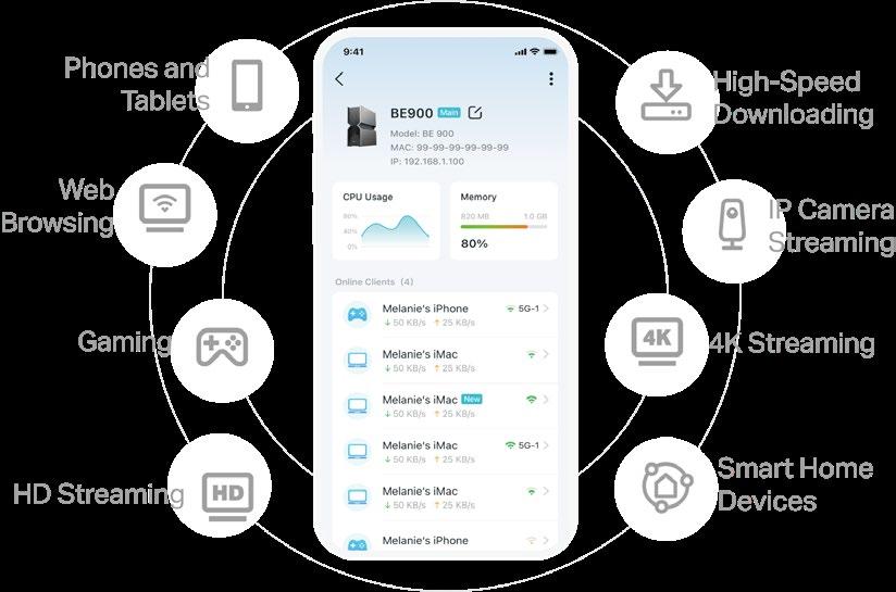 • Wi-Fi 7: Delivers higher Wi-Fi speeds, lower latency, higher efficiency, and stronger anti-jamming.