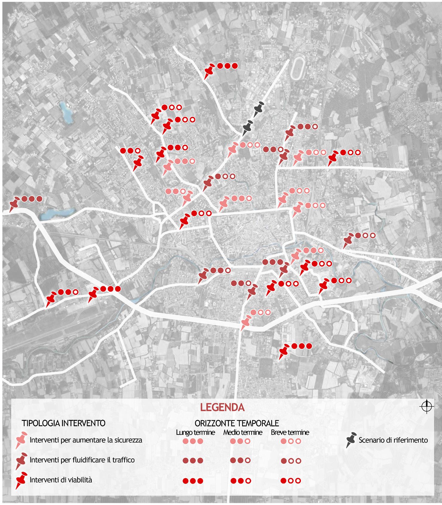Il PUMS propone una serie di interventi stradali, la cui realizzazione è distribuita nei diversi scenari temporali. L’obiettivo principale è il miglioramento del livello di sicurezza stradale nella rete urbana.