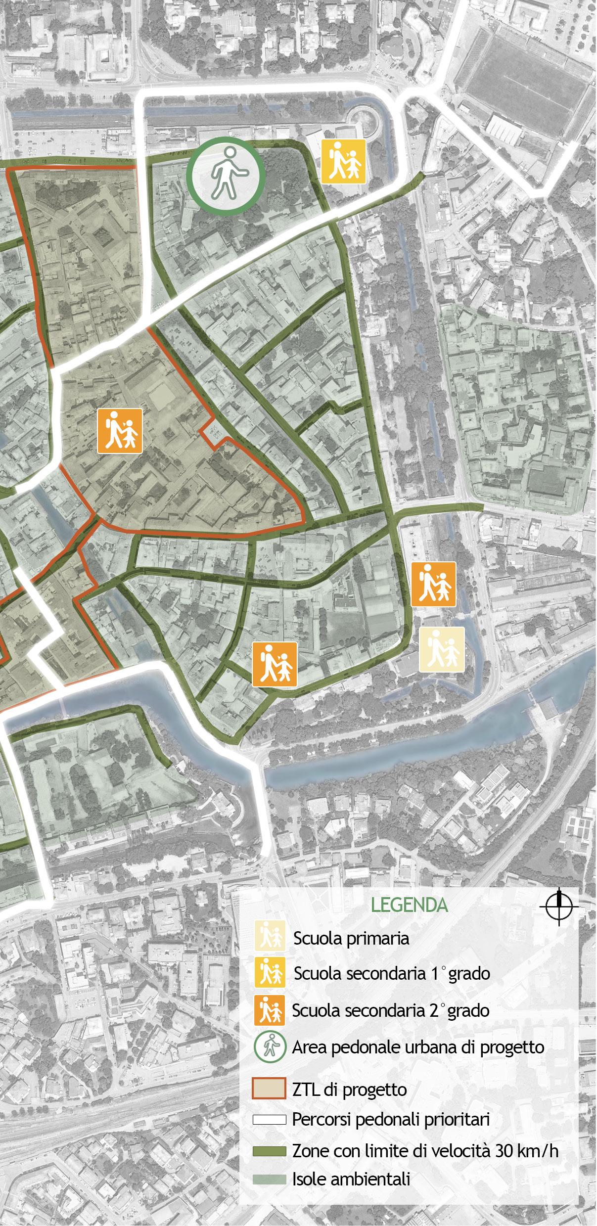 finalizzate al recupero della vivibilità degli spazi urbani. Le forme di mobilità attiva hanno la precedenza sulle auto e grazie ad opportuni interventi previsti diventano prioritarie.