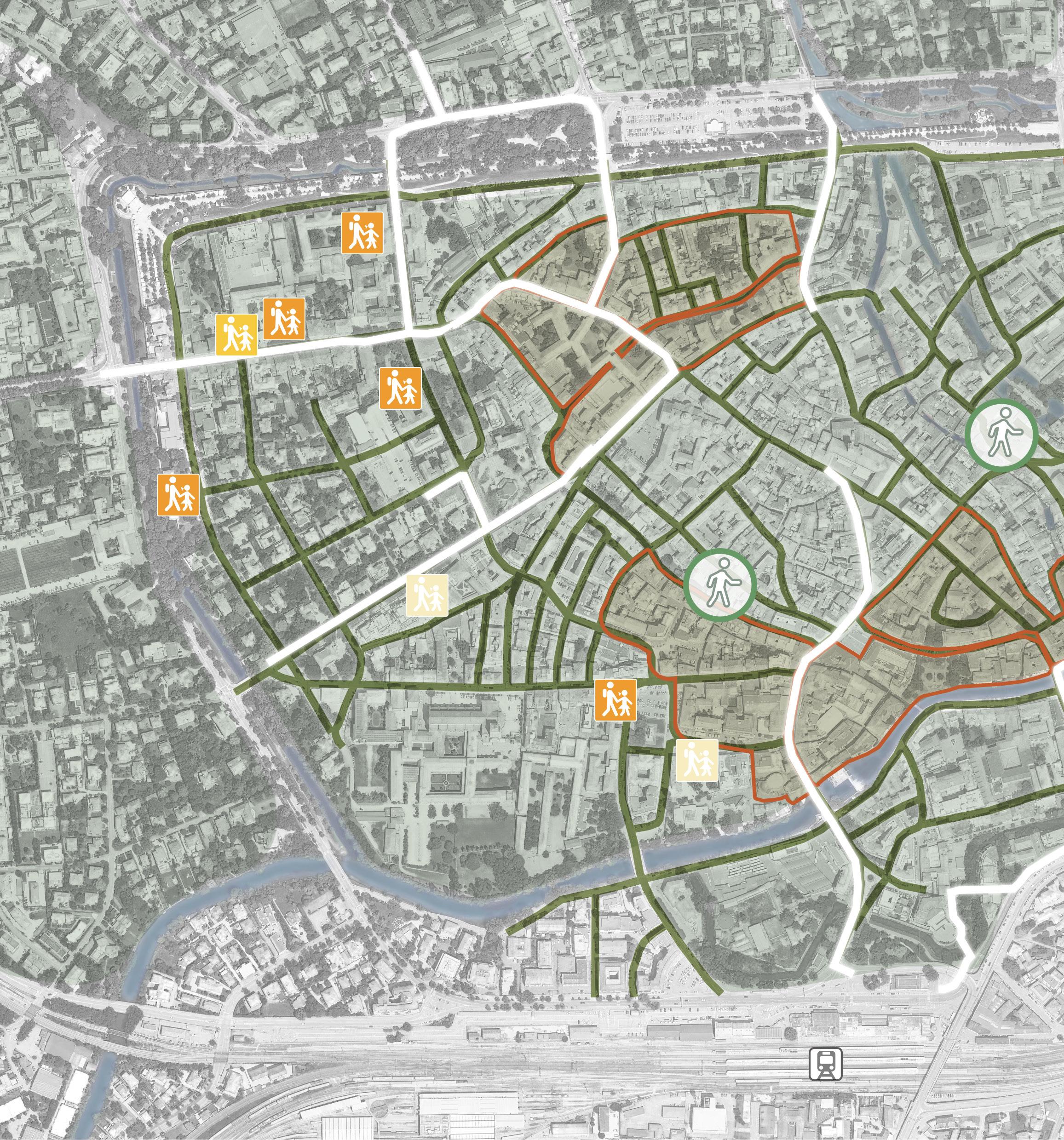 Il PUMS del Comune di Treviso si approccia alla pianificazione della mobilità pedonale per generare un cambiamento nella concezione della rete stradale da spazio conteso a spazio condiviso.