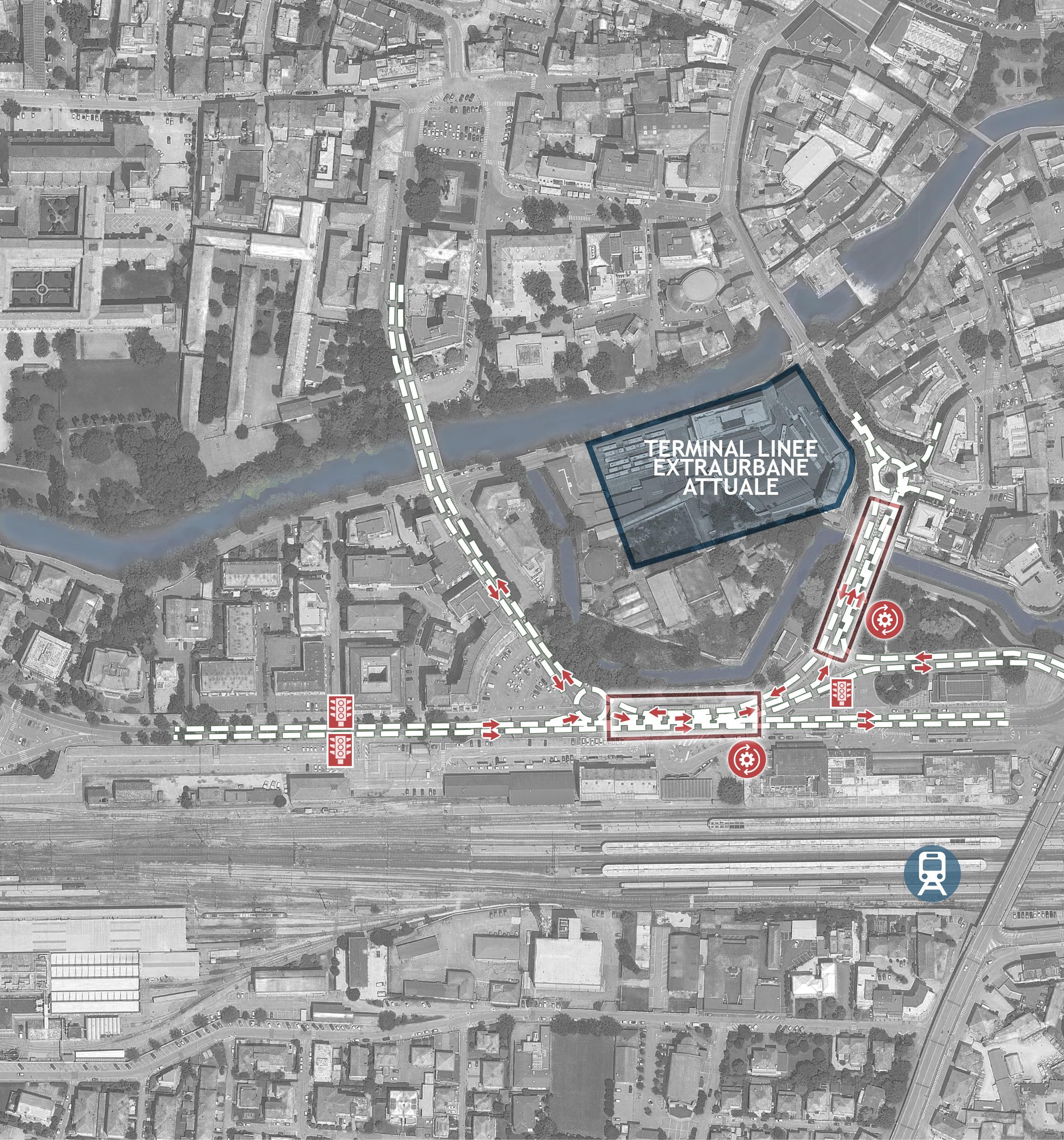 Si prevede lo spostamento della stazione dei bus extraurbani da Lungosile Mattei all’area dell’ex Cuor, la riorganizzazione delle fermate dei bus urbani su via Roma e la realizzazione di una Velostazione.
