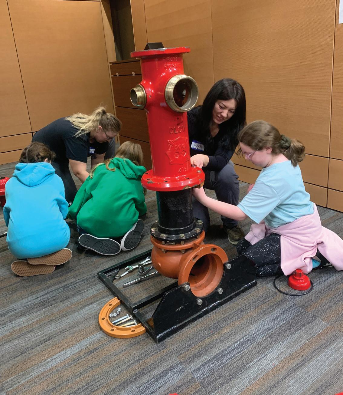 6. Sarah DeGidio, Erika Geske, and Shantel Broussard from Tacoma Water helped students assemble a fire hydrant.
