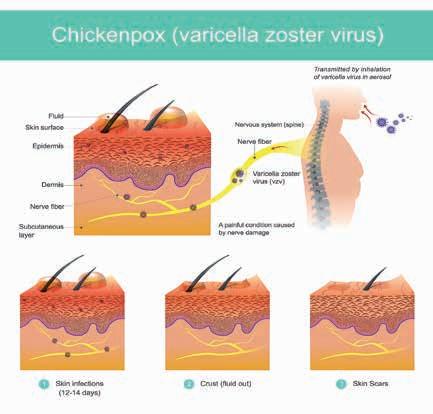 La varicela y el herpes zóster están relacionados porque son causados por el mismo virus (virus de la varicela-zoster). Después de que una persona se recupera de la varicela, el virus permanece latente (inactivo) en el cuerpo. Puede reactivarse años después y causar culebrilla.