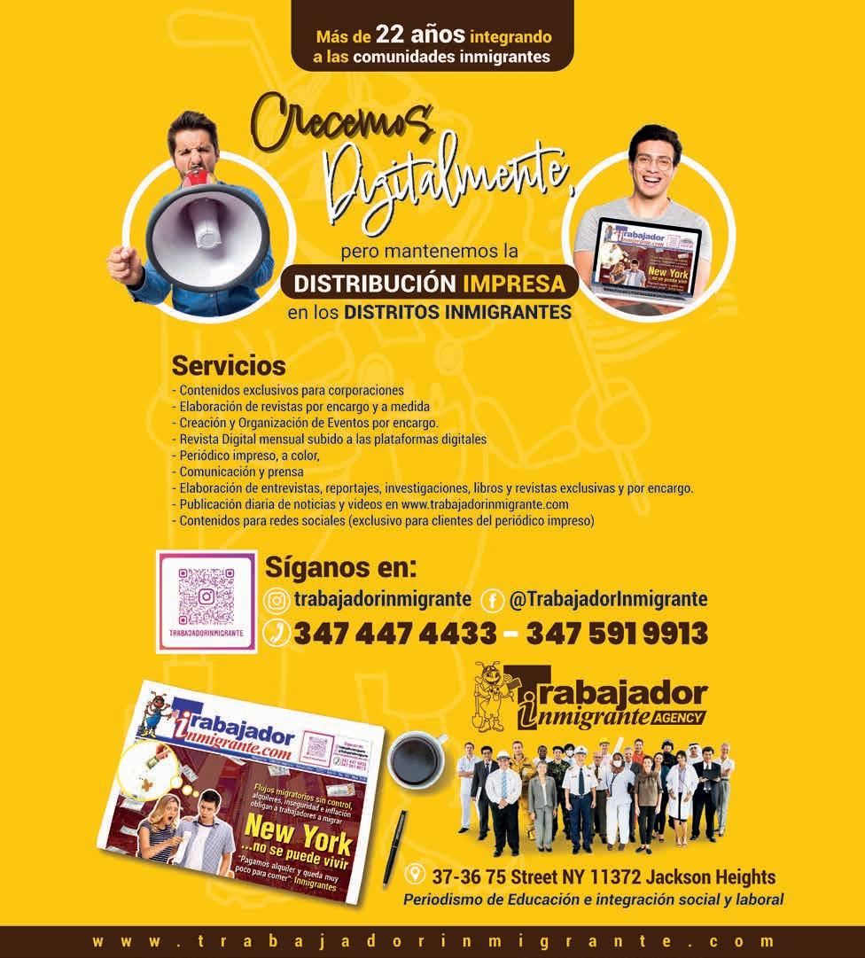 Diseñador Gustavo Agudelo V. Traductor y PP.RR & Sales Charlie Negron Tel: 917-600-0906 www.trabajadorinmigrante.com