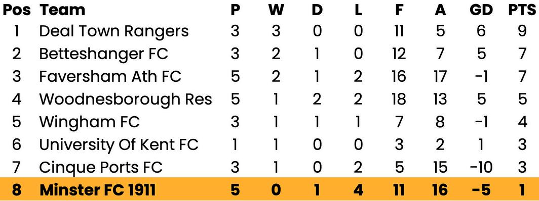 Across all of our teams, we have a mixture of results so far this season. Our new women’s team – known as The Hinds - are currently the pick of the bunch with 5 wins from 5 in the debut season in the SECWFL Whilst we tend to place enjoyment and participation ahead of results for our youth teams, it is perhaps our oldest squad - the U18s – who are picking up more points than others as they head into their first U18 season in the Kent Youth League. We have also seen some of their players representing our adults teams on a Saturday – so the progression is good andthefutureislookingbright.OurOldBoysteam–formestillannoyinglyyoungat the over 35 age group – have progressed in the Kent Veterans cup with a 1 Round win against Whitstable Town and more recently this past weekend beating CanterburyEaglesVetswithafine4-0homewin.OurReservesarefacingadifficult seasonsofarwherewehaveseensomeolderplayersdepartoverthesummerand agoodcollectionofyoungplayerscomingintothesquad.Itisalmostanewstartfor managerElliot“Beardo”Austinwhoalsoseessomeoftheyoungstersfillingintothe firstteamsquadonoccasionsaswehavehadvariousinjurysetbacks.TheReserves certainly have huge potential and I predict they soon start getting the results that their performances have warranted Our 3 adults team – the 1911s – are even younger but have one or two experienced players in there to help them progress in the Canterbury League where they remain in the Premier Division for this season. Leagueresultshavebeenhardtocomebybutalloftheirdefeatstodate st rd havebeenbyasinglegoal.TwowinsoutoftwointheLeagueCupgroups stagesshowusthattheystillhaveagoodseasontolookforwardto.