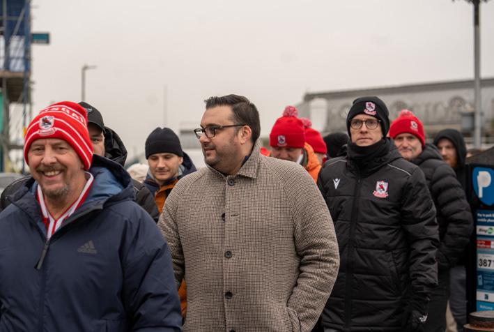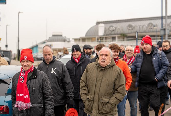 BETWEEN 150-200 FANS JOINED RONNIE AND THEY WALKED A MILE FROM THE WETHERSPOONS UP TO THE GROUND
