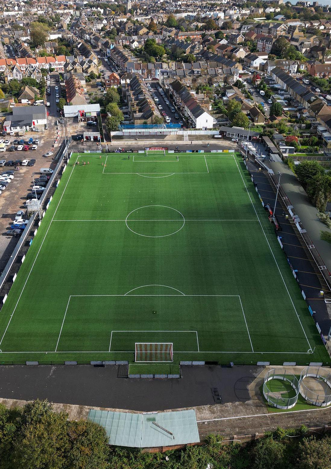 The first four 5-a-side pitches (pitch 1, 2, 3 & 4) will have a new 3G surface (or plastic grass as many call it). This is the very similar to the surface of the main stadium pitch. The back four pitches (pitches 5, 6, 7 & 8) will have all internal rebound walls removed and be transformed into one full sized, FA regulation, 7-a-side pitch; this will also have markings for two 5-a-side pitches. The 7-a-side pitch will allow the club to host regulation FA matches and increase the total number of regulation pitches in Thanet.