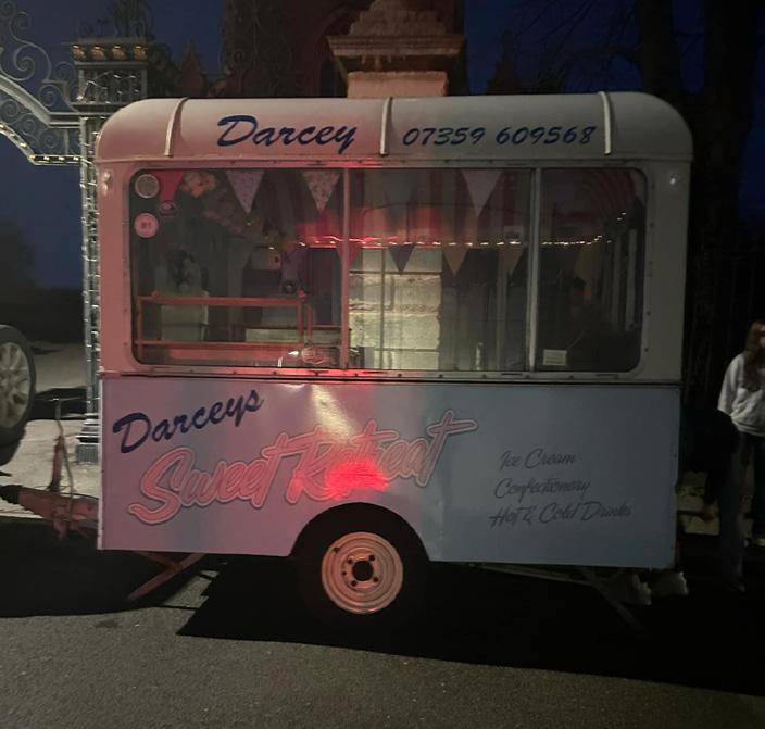 Local businesses supplied the food and drink. The Golden Fish Bar supplied the sausage and chips, Julie & Kirsty Coombs supplied pizza and fizzy drinks, Darcy’s Sweets Retreats donated 120 bottles of water and their ice cream trailer that Shrimpos served the food from.