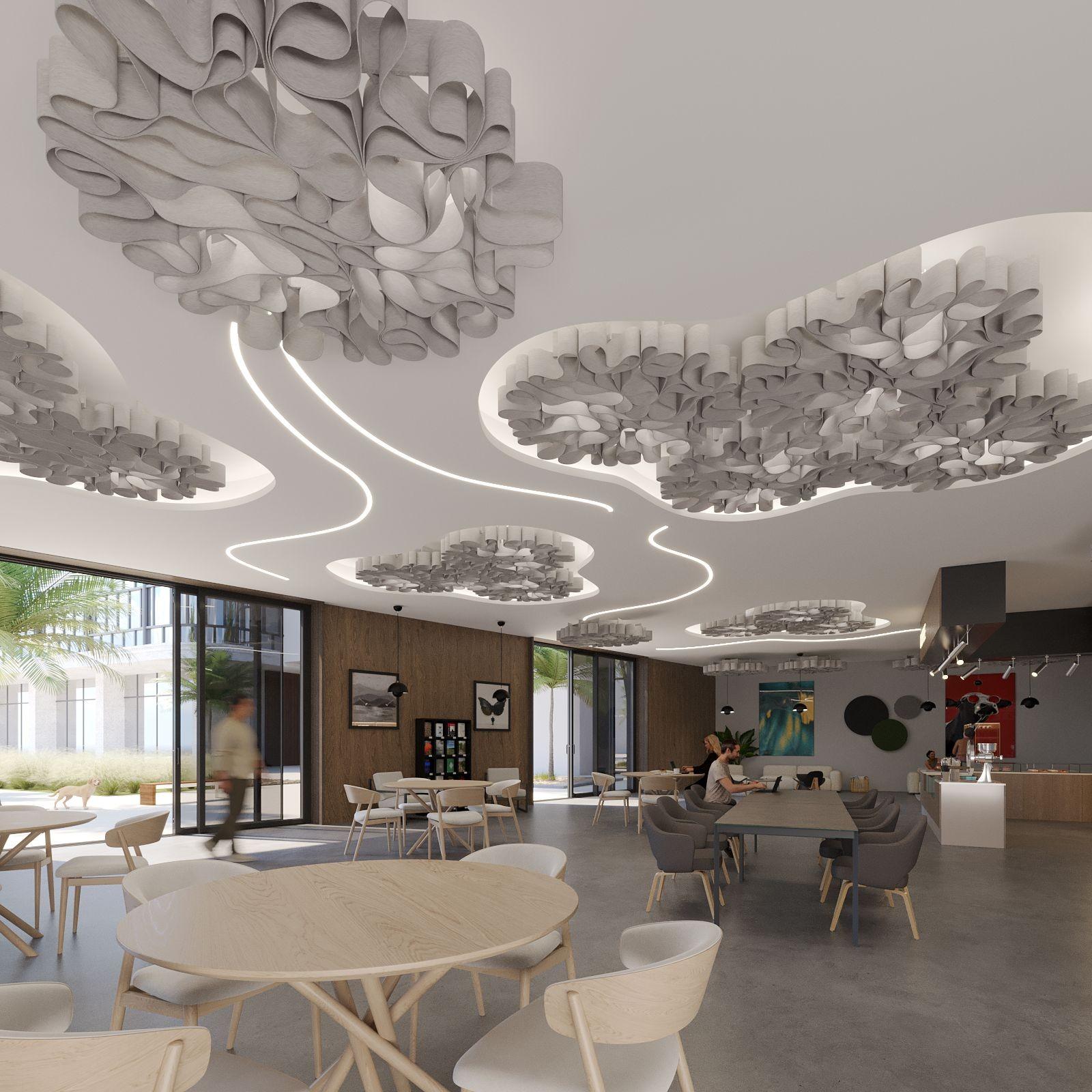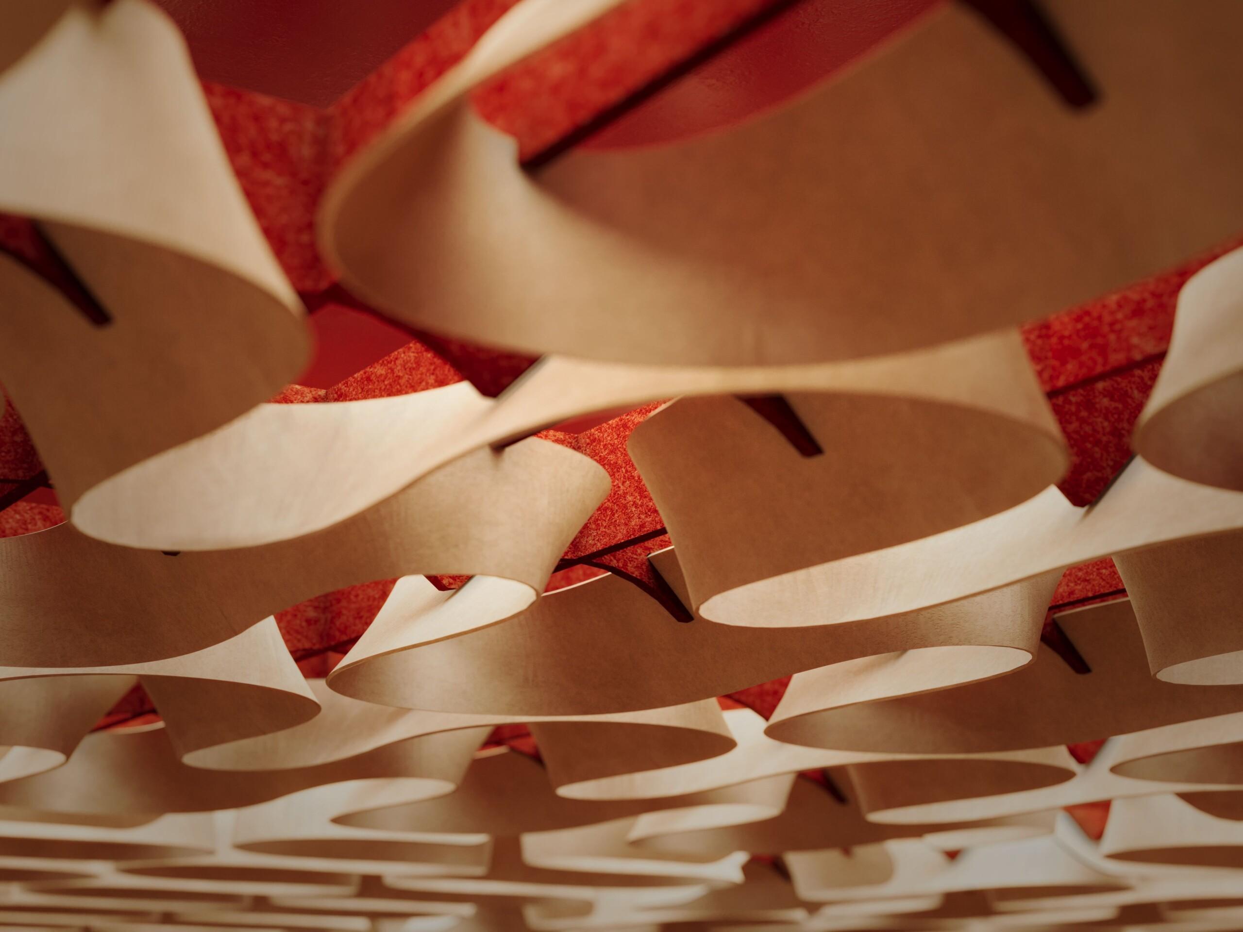 This unique form factor features 12mm Soft Sound® ribs, which support the module, along with 3mm thin Soft Sound® ribbons. These thinner ribbons enable greater curvature and more organic structures in the design. This innovative design not only enhances acoustic performance but also allows for aesthetic versatility, making it a perfect fit for any contemporary space.