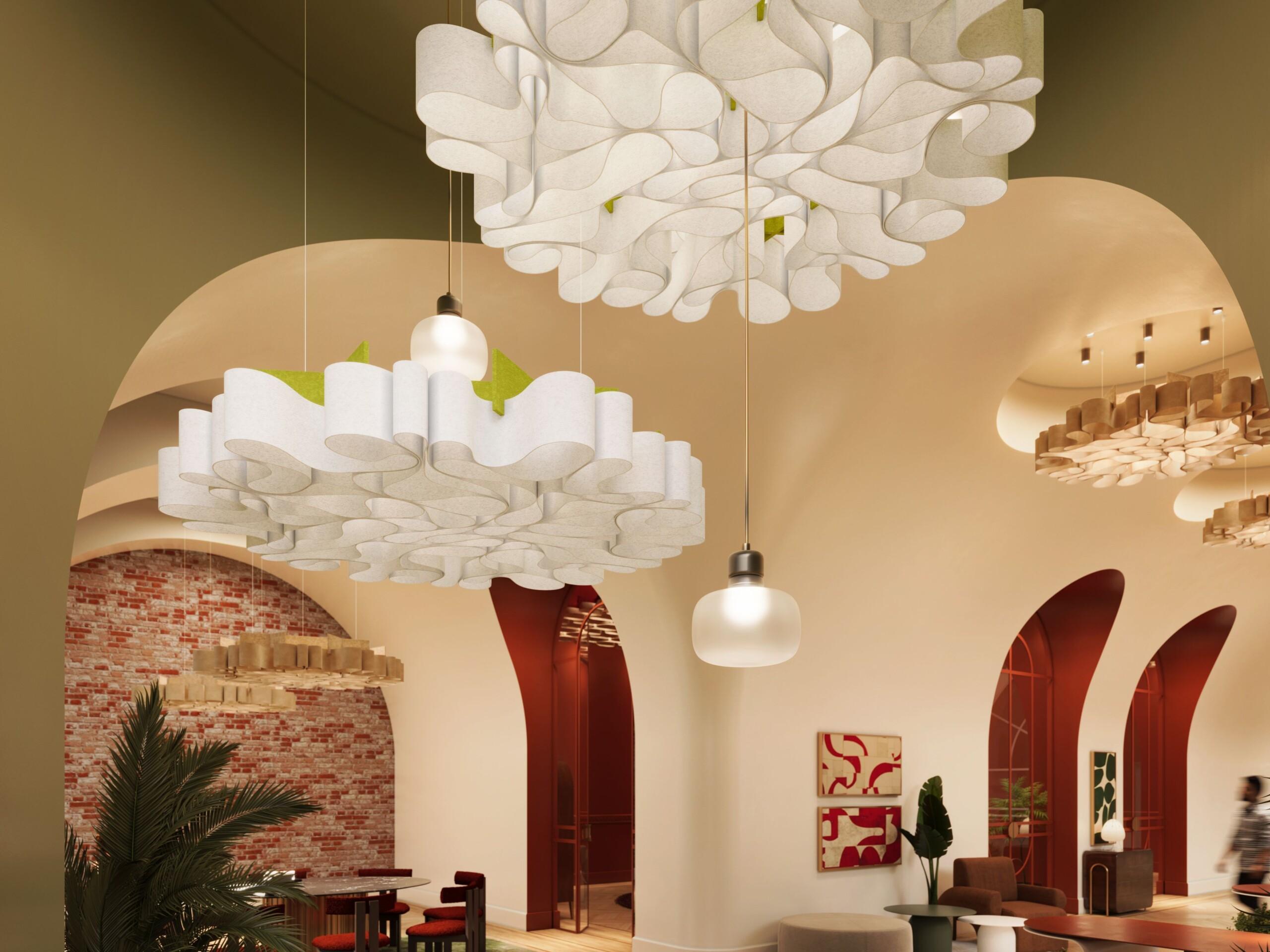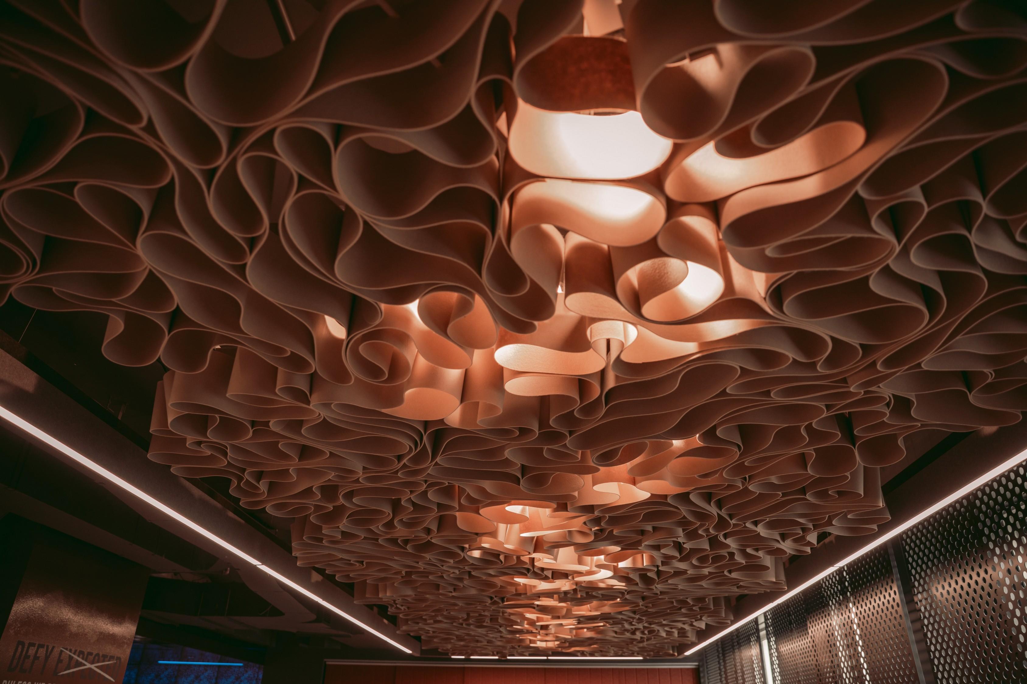 Elevate your next design with Tapestra™, a stunning collection of cable-hung acoustic ceiling modules that harmoniously blend sound absorption with flowing, organic artistry. This innovative line transforms ceilings into captivating acoustic landscapes, thanks to its interwoven, curved design.