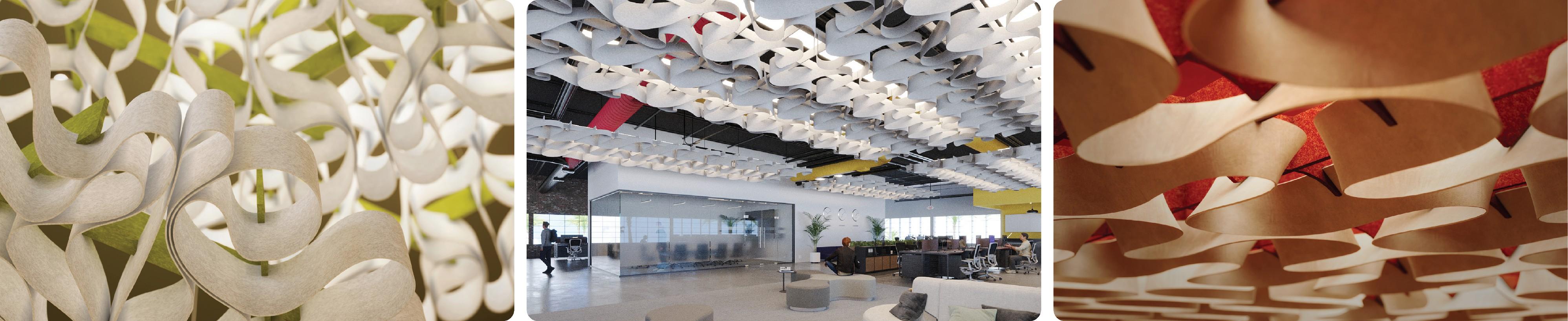 Tapestra™ Weave, Lace, and Pleat modules can be arranged in a continuous pattern to create a fluid and cohesive aesthetic that enhances any space. Meanwhile, Tapestra™ Spool modules can be installed in tandem to form creative clusters that provide effective acoustic coverage. By combining multiple modules, designers can craft visually striking and harmonious environments.