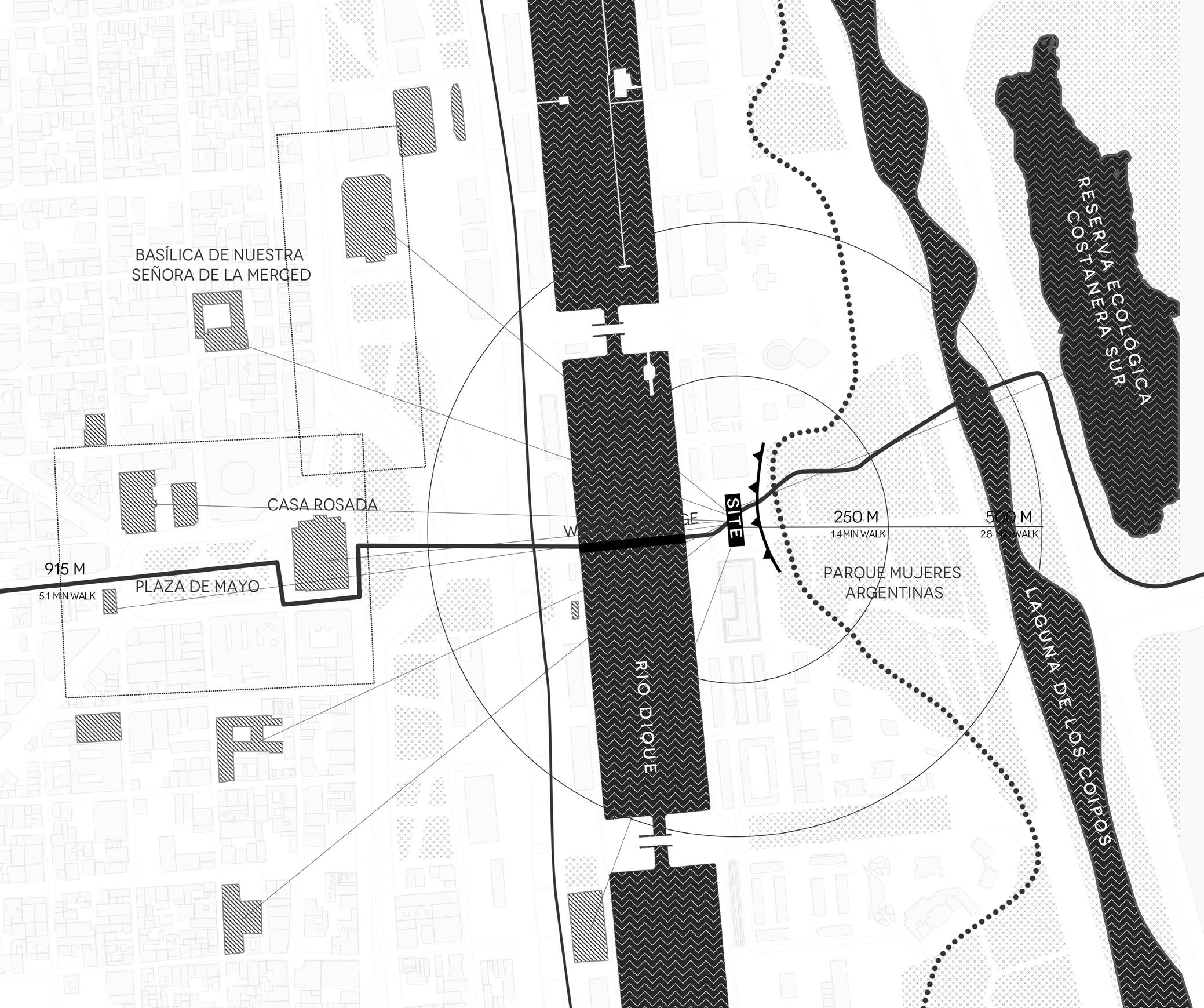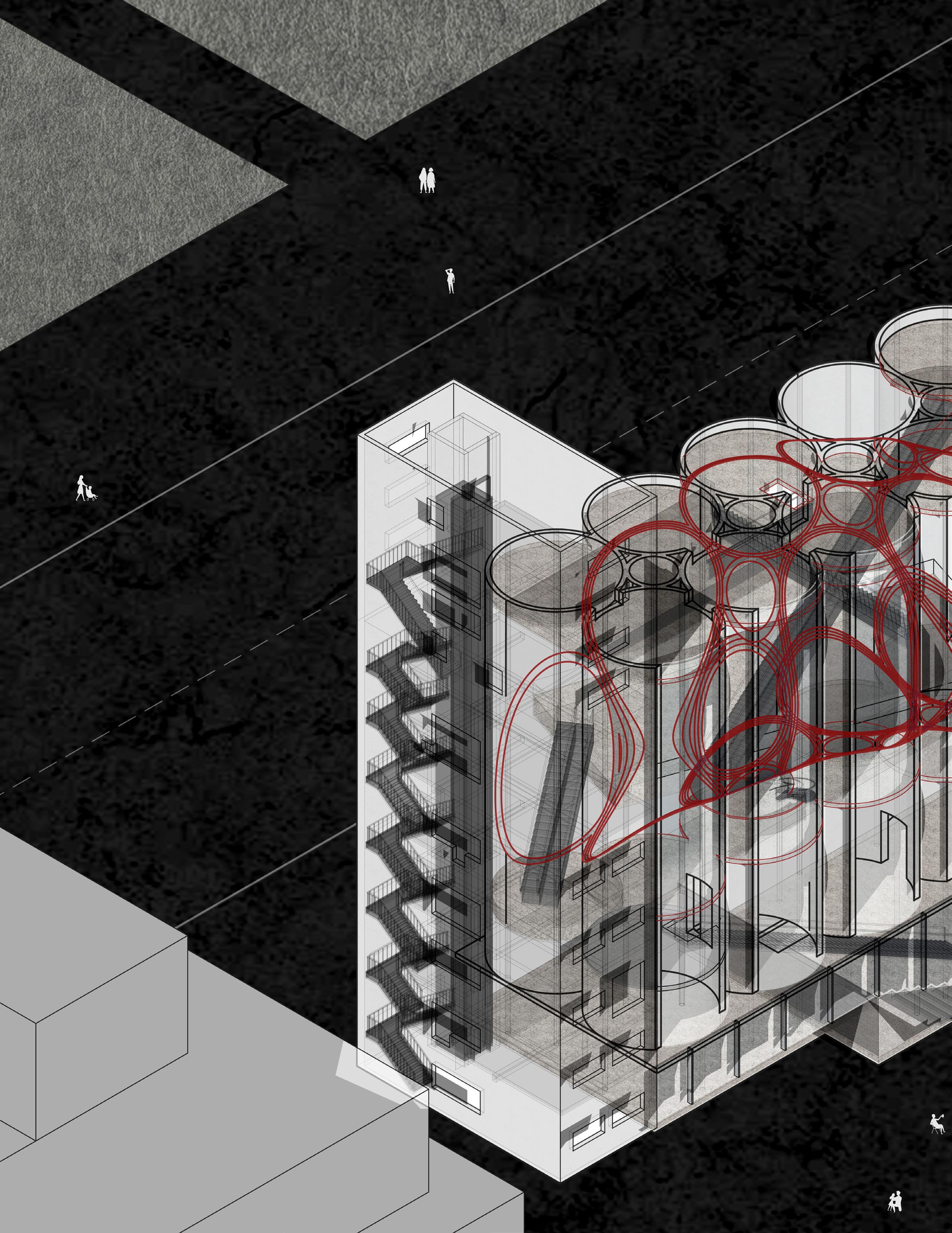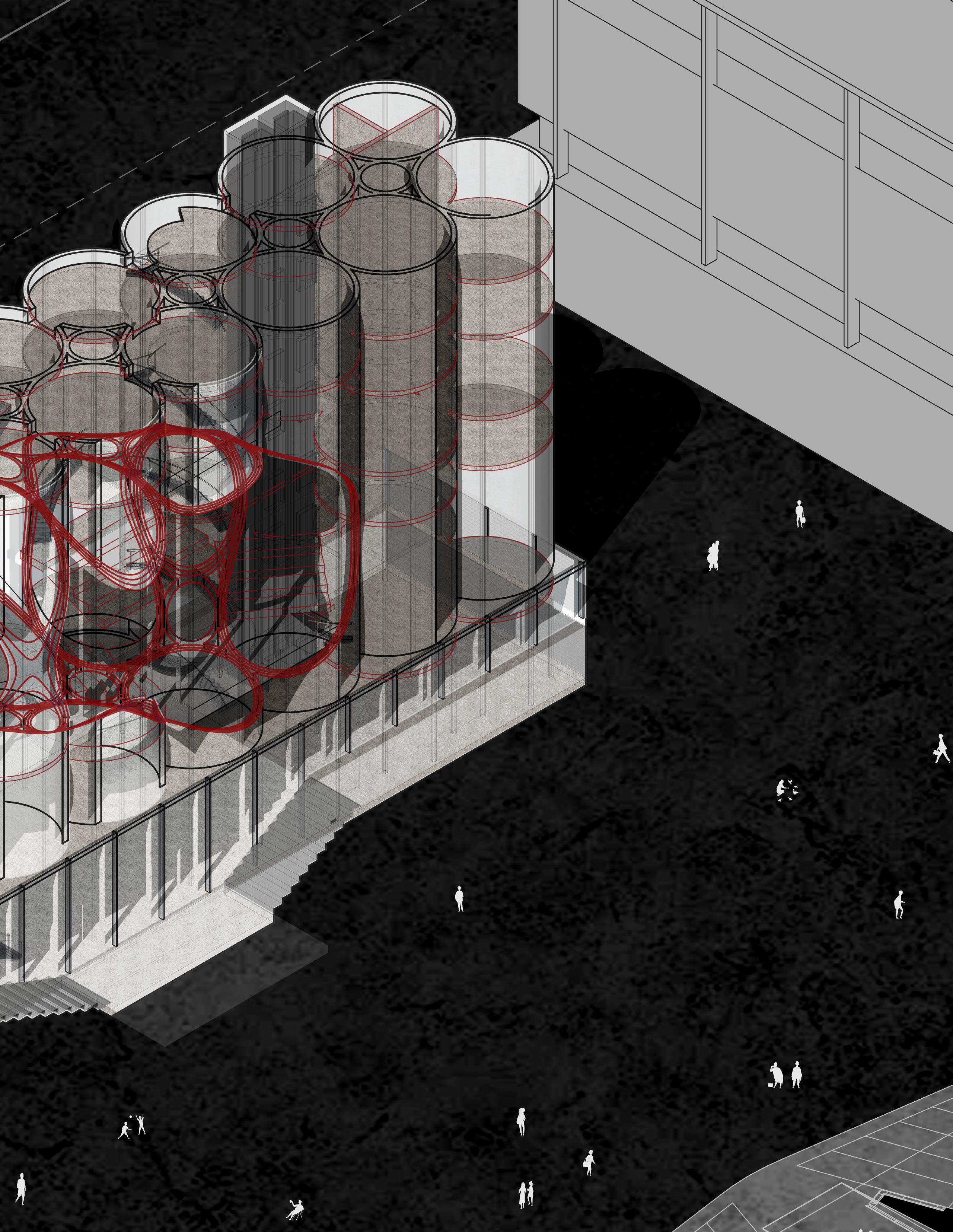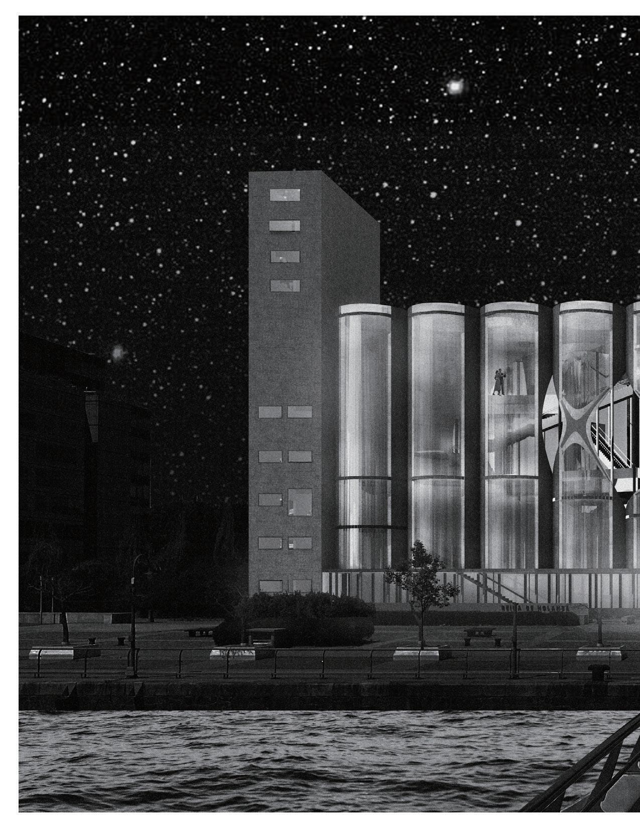 Situated in one of the most strategic places in Buenos Aires, the Silos that belonged to the old “Junta Nacional de Granos” are located on a monumental axis of great historical and cultural importance: through the Puente de la Mujer they connect directly with the Government House, the Plaza de Mayo and the National Congress. Built in 1903, the Silos contained telescopic pipes to store bulk products, emphasizing verticality in the still horizontal landscape of the time. Its industrial materiality in reinforced concrete, the configuration of its openings and the proximity to the river, are just some of the characteristics defined by the program. Out of use for more than 90 years, today this majestic ruin has remained suspended in time.