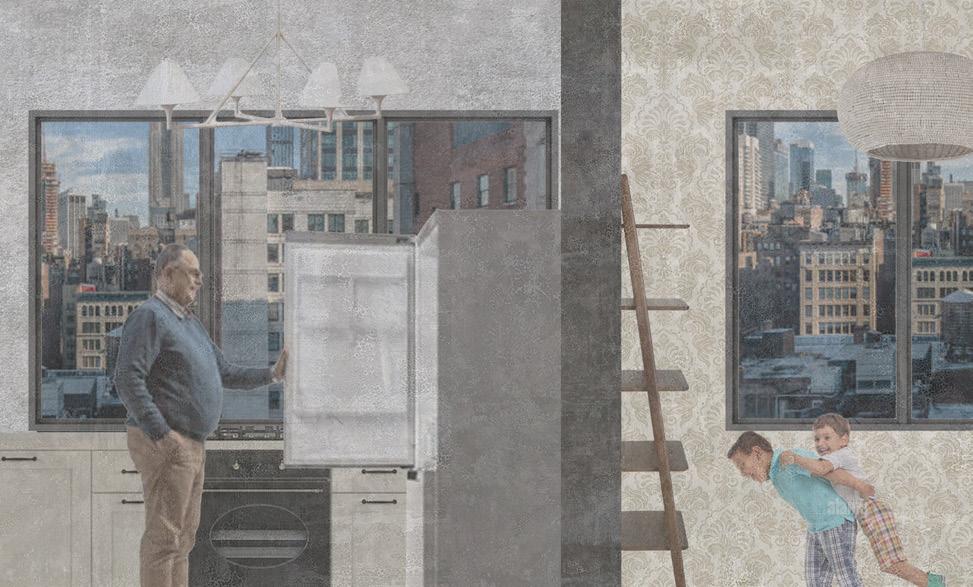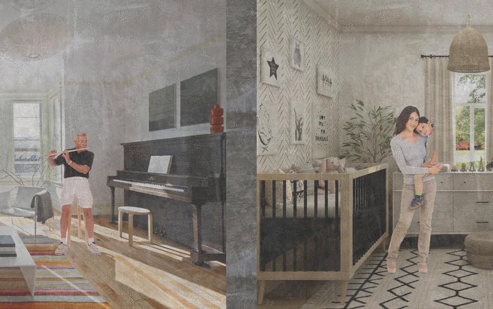 They inhabit the apartment as a shared ecosystem shaped around family life, balancing collective routines with moments of retreat. The central living spaces anchor daily togetherness, meals, play, homework, and conversation. while Smaller rooms and thresholds give each family member room to decompress without isolation. Movement is constant and overlapping, with objects and activities migrating throughout the day. The plan reflects a family that values adaptability, emotional closeness, and spatial generosity, using the home as a flexible framework that supports care, growth, and changing rhythms rather than fixed roles or rigid order.