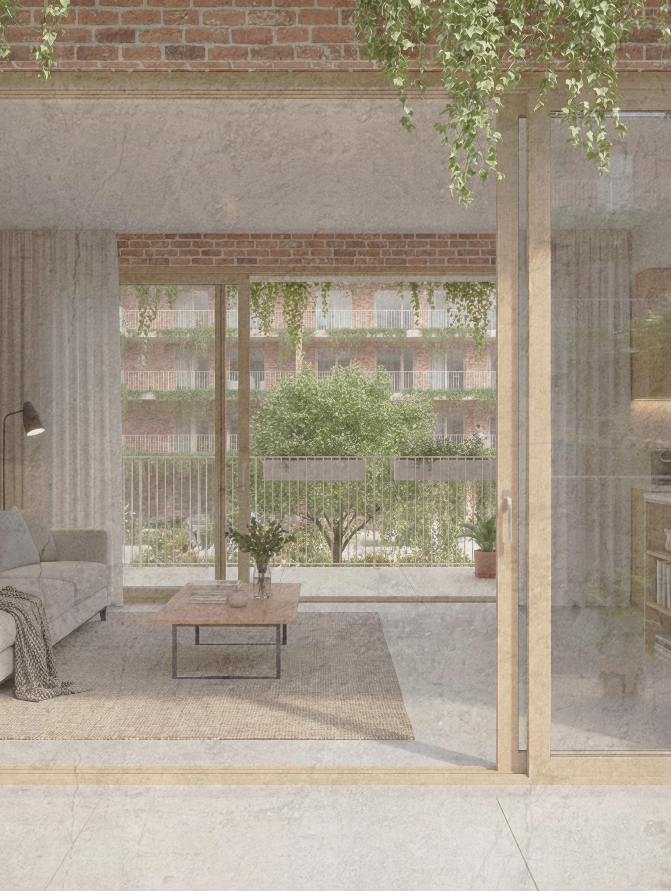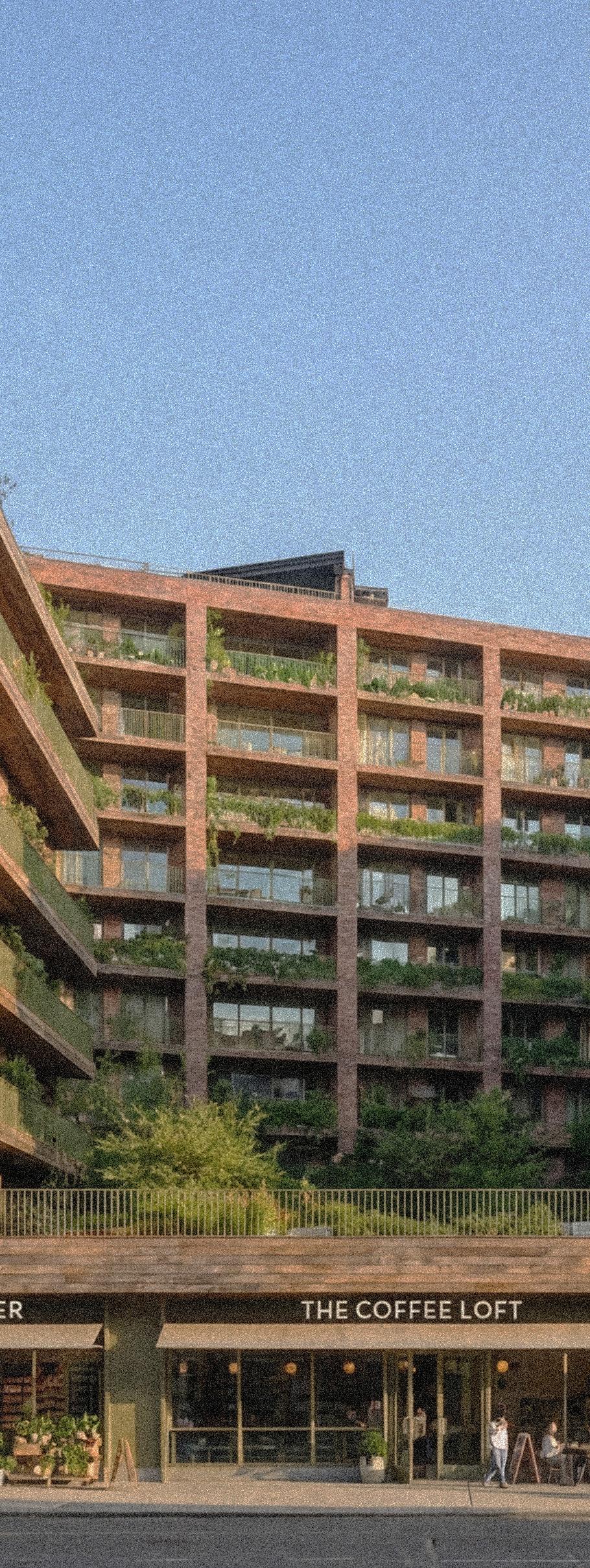 This strategy creates a series of nooks, alcoves, and thresholds, spaces that are neither fully private nor fully shared. Within units, these moments become places for sitting, storage, or pause; between units, they form soft connections that register the presence of neighbors without direct exposure. As the building steps up, the grid logic remains consistent, allowing the massing to shift vertically while preserving alignment and continuity.