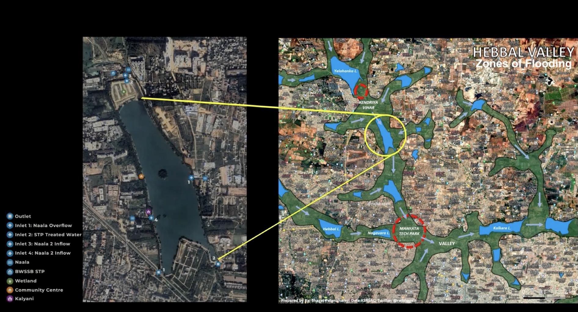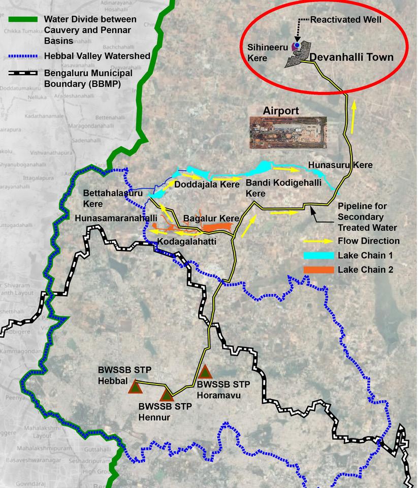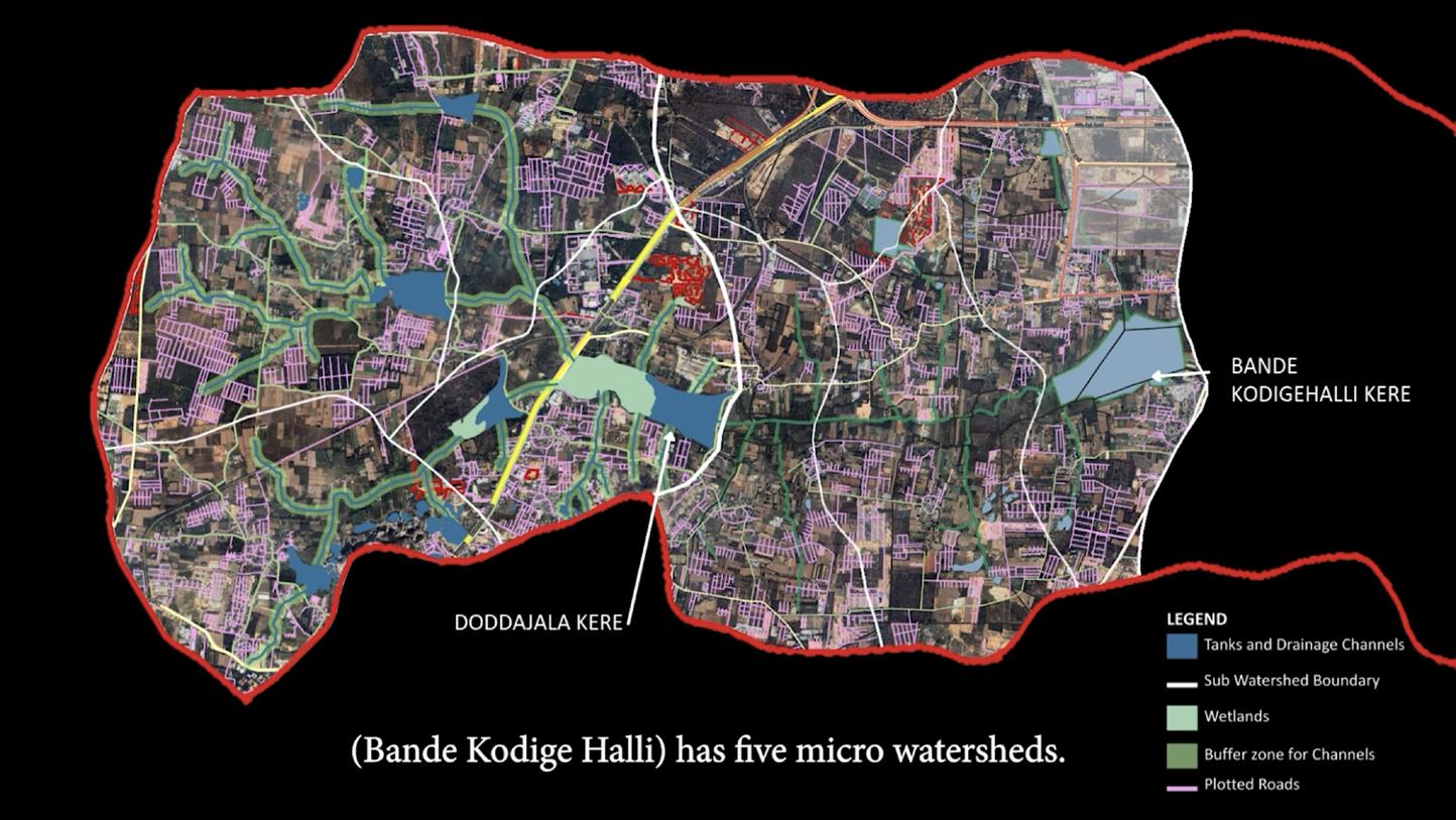 expanding this logic across the full lake chain, from Doddajala Kere to Bande Kodigehalli Kere—showing how water moves laterally through connected tanks and channels within a single watershed, despite administrative and infrastructural fragmentation.