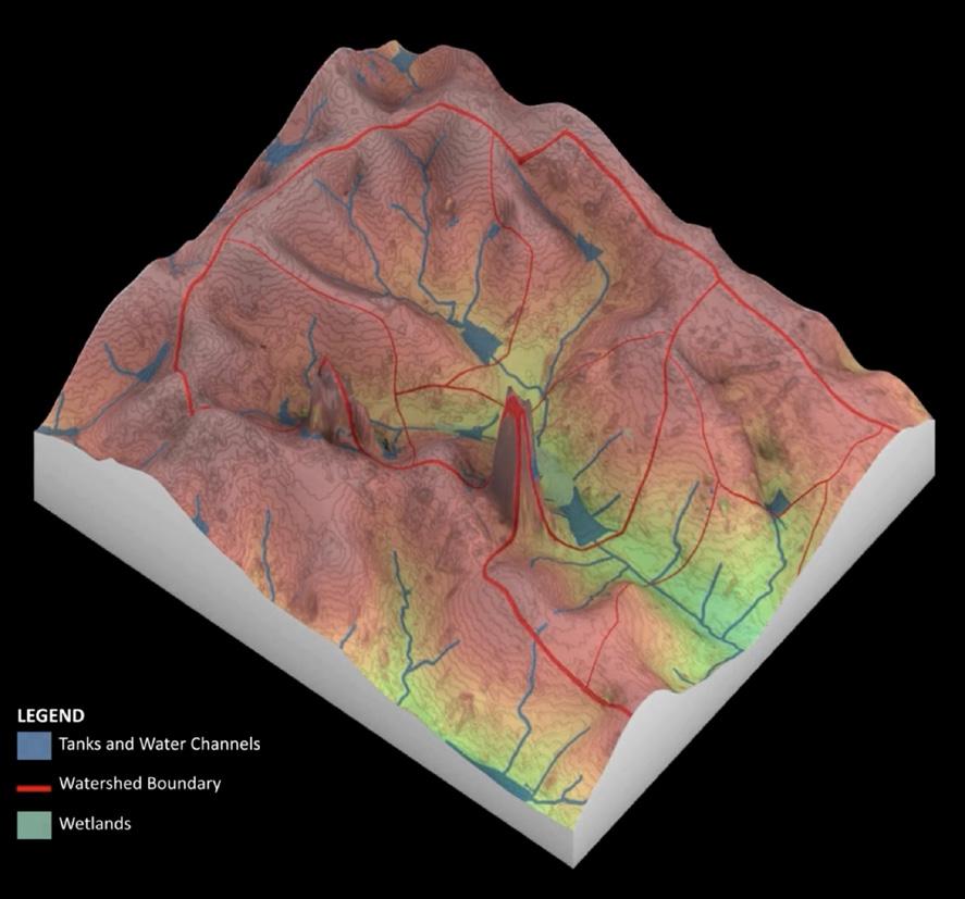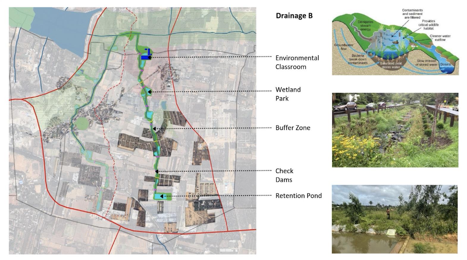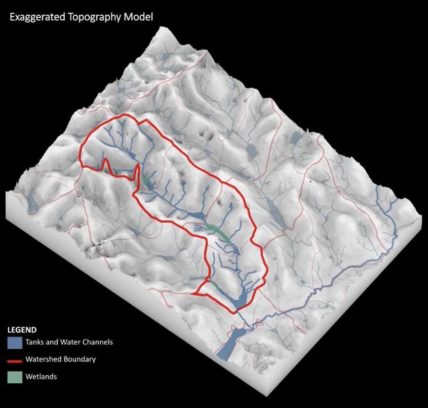 From our understanding of the cultural and topological contexts of the land, we arrived at two proposals: Together, Proposals A and B operate as complementary scales of intervention. Proposal A establishes localized stewardship and social engagement, grounding water management in everyday practices and education. Proposal B extends this logic territorially, using drainage infrastructure to structure ecological performance and growth across the watershed. Both proposals reject purely technical or plan-based solutions, instead advancing a sectional, landscape-driven approach where water infrastructure doubles as public space, ecological system, and social framework.