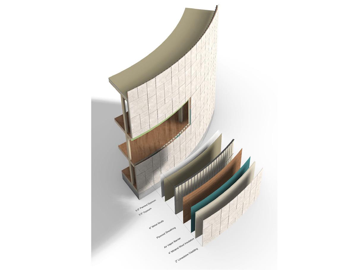 Because the system is modular, it supports constructability and repetition while still allowing variation across the envelope. The façade operates simultaneously as an environmental filter, a structural extension, and an architectural expression of movement, redefining the curtain wall as a site-calibrated panel system rather than a generic enclosure.