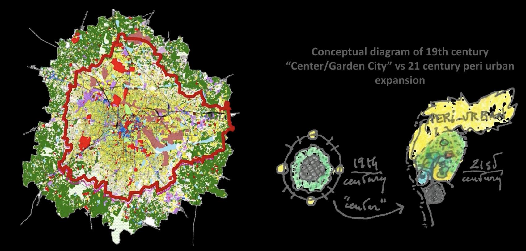 Proposals A and B operate across complementary scales, demonstrating how localized sectional interventions can influence watershed-wide performance. At the scale of the drainage channel, water is filtered, stored, and redistributed through wetlands, buffers, and recharge zones that remain accessible and visible. At the territorial scale, these same systems structure peri-urban growth, linking open space, agriculture, and infrastructure within a continuous ecological framework.