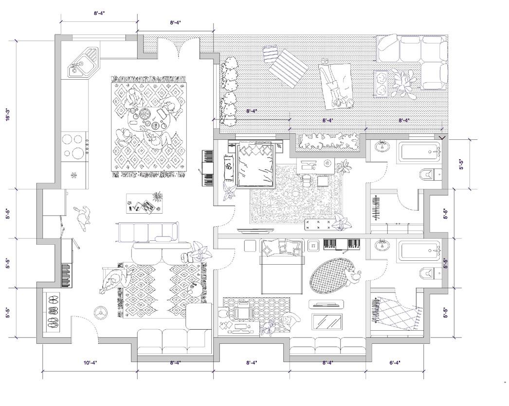 They share the apartment as a negotiated terrain, comfortable moving between intimacy and autonomy. The open living space holds their shared life, slow dinners, overlapping work, friends gathered on the rug while the quieter edges allow each of them to withdraw without friction. One is expressive and leaves traces behind; the other is attentive and subtly reorders. The plan reflects a couple who value closeness but understand that a strong relationship is sustained by space, rhythm, and mutual respect for difference.