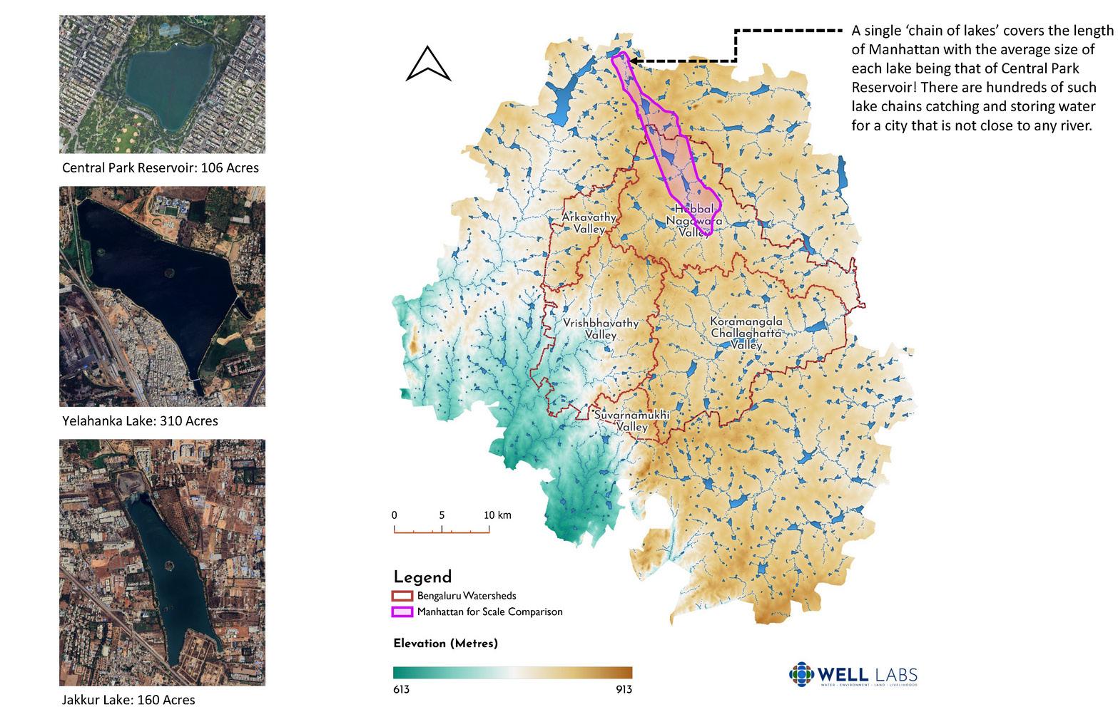 Situated on a ridge of the Deccan Plateau, Bengaluru is divided into two major watersheds corresponding to the Cauvery and Pennar river basins. Unlike river-based cities, Bengaluru historically relied on a constructed network of cascading lakes, earthen dams, and drainage channels that captured monsoon rainfall and distributed it through gravity across valleys. These lake chains functioned as continuous systems rather than isolated reservoirs, supporting agriculture and recharging shallow aquifers.