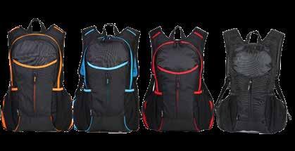 9240 urban travel bag Romslig weekendbag med moderne design, perfekt for helgeturen. • Stort hovedrom. • Lomme til verdisaker på innsiden. • Egen lomme for sko/skittentøy. • Avtagbar skulderstropp. Størrelse: 57L (H30, L60, D29) 9056 Original Bike pack Sporty aktivitetssekk med helpolstret myk ryggplate. som sitter bra på ryggen når du er i aktivitet. • Bryststropp + midjebelte • Lomme til verdisaker i front • Lomme med opphengskrok for drikkepose (art.9059) • Utvendige flaskelommer Størrelse: 20L (H45, B25, D16) 9056-17 9056-28 9056-06 9056-04 398,358,-
