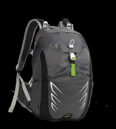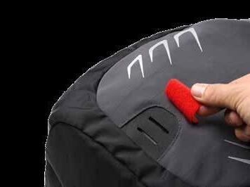 Rain cover with reflector that protects the backpack from rain. The rain cover is elastic and fits several of our bags. Purchased separately.