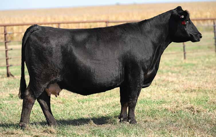 A stout made brood cow prospect that reads very productive in her build and body style. We deem her flawless in terms of her skeletal design, and she looks to be the easy keeping kind that offers tremendous longevity. She is no slouch when it comes to her EPD profile either, with top 10% WW, and top 4% YW & ADG figures. This trend was also reflected by her impressive 115 WWR, and 750lbs. plus weaning weight.