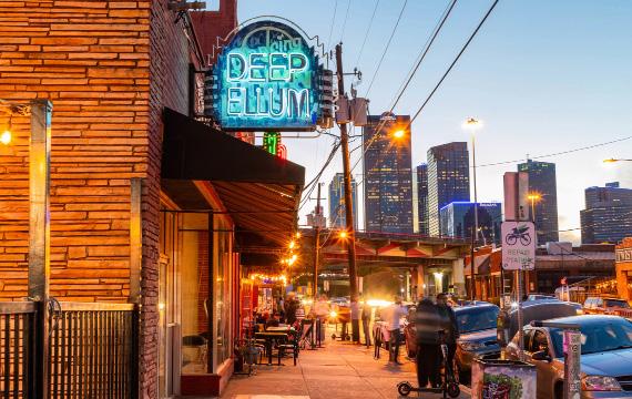 Deep Ellum is home to a community of over 400 businesses. Since its founding in 1873, Deep Ellum has been associated with an ever eclectic range of commercial interests. From the theaters, gambling halls, and pawn shops of the 1920s to the punk rock venues and industrial warehouses of the 1980s to the bars, restaurants, shops, galleries, and creative offices of today, Deep Ellum has continually fostered an atmosphere of entrepreneurship. The district is home to independent businesses, mom-and-pop shops, and start-ups as well as regionally and nationally recognized brands. Together, they form a symbiotic ecosystem with architects and design shops inspired by local artists, restaurants collaborating with music venues and craft breweries, and technology firms from Mark Cuban’s first business, Broadcast.com, to Uber have been drawn to make the district home.