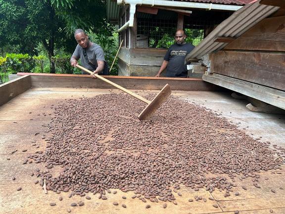 Flaky crescent cookies. A harmony of 70.5% chocolate, cinnamon, and crunch. Finished with a sprinkling of Demerara sugar and cinnamon.