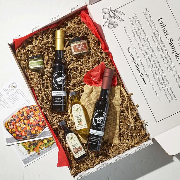 Saratoga Collection: Garlic Olive Oil, Red Apple Balsamic, Pomegranate Quince White Balsamic