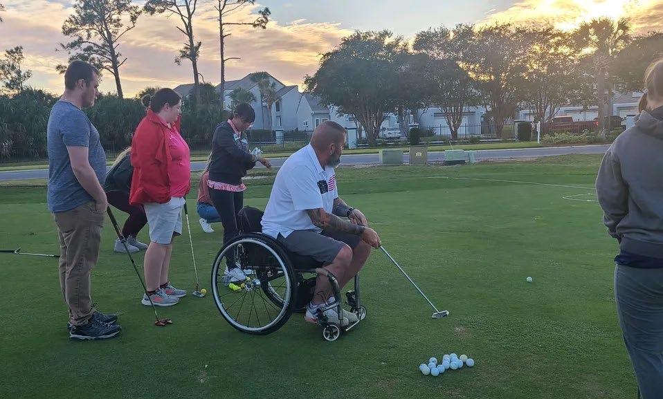 “To be honest with you it truly saved my life,” Tip says. “I was in a dark place for five or six years, and when I was introduced by the Stand Up And Play Foundation to this cart, it was a game-changer for me, literally not just the game of golf but the game of life.” Tip founded the Florida Panhandle Golf Therapy Alliance (FPGTA) in 2022 to share this