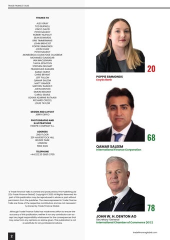 © Trade Finance Talks is owned and produced by TFG Publishing Ltd (t/a Trade Finance Global). Copyright © 2020. All Rights Reserved. No part of this publication may be reproduced in whole or part without permission from the publisher. The views expressed in Trade Finance Talks are those of the respective contributors and are not necessarily shared by Trade Finance Global. Although Trade Finance Talks has made every effort to ensure the accuracy of this publication, neither it nor any contributor can accept any legal responsibility whatsoever for the consequences that may arise from any opinions or advice given. This publication is not a substitute for any professional advice.