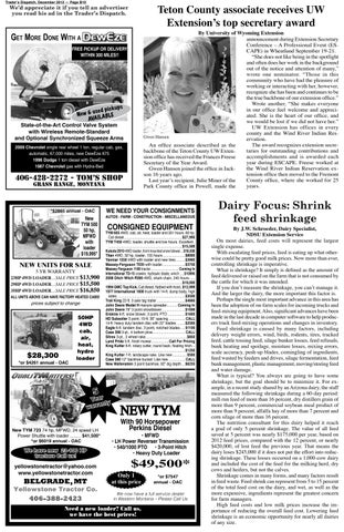 By University of Wyoming Extension announcement during Extension Secretary Conference – A Professional Event (ESCAPE) in Wheatland September 19-21. “She does not like being in the spotlight and often does her work in the background out of the notice and attention of many,” wrote one nominator. “Those in this community who have had the pleasure of working or interacting with her, however, recognize she has been and continues to be the true backbone of our extension office.” Wrote another, “She makes everyone in our office feel welcome and appreciated. She is the heart of our office, and we would be lost if we did not have her.” UW Extension has offices in every county and the Wind River Indian ResGwen Hansen ervation. The award recognizes extension secreAn office associate described as the taries for outstanding contributions and backbone of the Teton County UW Extenaccomplishments and is awarded each sion office has received the Frances Freese year during ESCAPE. Freese worked at Secretary of the Year Award. the Wind River Indian Reservation exGwen Hansen joined the office in Jacktension office then moved to the Fremont son 16 years ago. County office, where she worked for 25 Last year’s recipient, Julie Miner of the years. Park County office in Powell, made the
