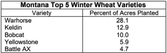 Released in 2019 by Montana State University, Bobcat is a solid stemmed hard red winter wheat with improved yield potential rela tive to other solid stemmed varieties. Bobcat is an awned, whiteglumed, semi-dwarf wheat with medium to late maturity. Bobcat is the top performing line in locations where sawfly cutting has occurred. Stem solidness is excellent, significantly higher than to Warhorse. Bobcat has above average test weight and aver age protein, and average winter hardiness. Bobcat is resistant to prevalent races of stripe and stem rust, but suseptible to leaf rust. Bobcat has above average mill and bake properties. Bobcat is well adapted to all areas of Montana!