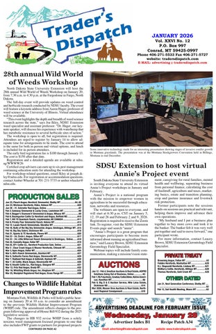 Our Advertising Deadline for the November 2024 issue of the Trader's Dispatch will be October 30th. Phone us at (406) 271-5533.