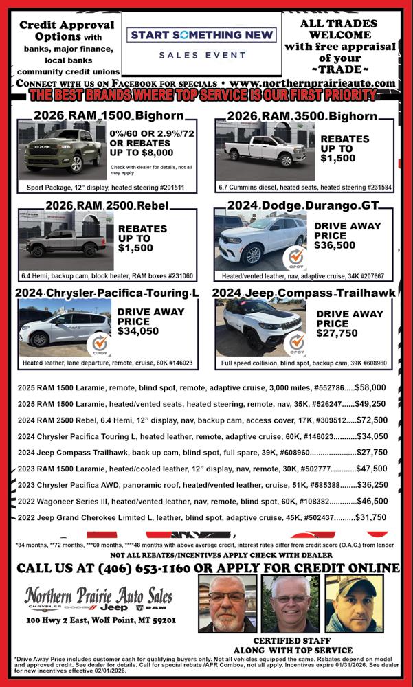 • Sales & Circulation departments located in MT Call today to place an ad or to subscribe! Office - (406) 271-5533