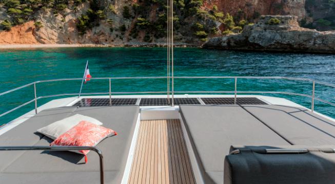 This yacht expertly combines space with luxury without compromising sailing ability.