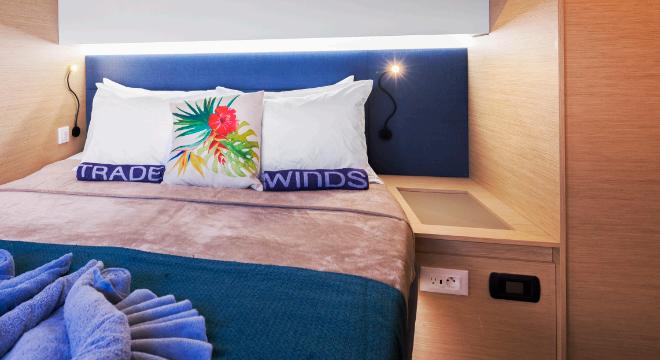 Two different designs of the TradeWinds 70 are available, one with an expansive Master Suite, our Premium cabin.