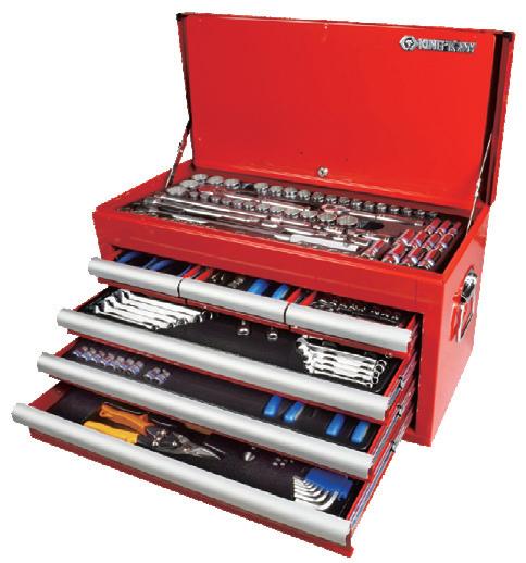 21 Code Description +GST Inclusive KT7510MRC 110pc Sockets, R/OE Wrenches, Hex Keys, Bits & More $464.29 $533.93 KT7577MRC 77pc (6pt) ockets, R/OE Wrenches, Spark Plug Sockets & More $365.94 $420.83 KT7587MRC01 87pc Sockets, R/OE Wrenches, Spark Plug Sockets & More $461.56 $530.79 1/4" DR 25PC SOCKET & SCREWDRIVER BIT SET KT2525MRE Contains: • KT2335M-series - 1/4" Dr 6pt standard sockets - 4-13mm • KT1025P-series - Phillips bit -PH2 • KT1025H-series - 2 x hex bits - 5 + 6mm • KT1025T-series - 6 x torx bits - T10-T40 • KT2771-series - 1//4" Dr reversible ratchet • KT2221-series - 1/4" Dr extension bar - 4" • KT2142 - 1/4" Dr Bit holder. 1/4" DR 26PC MINI BIT RATCHET SET KT1026CQ-AM 1/4, 3/8 & 1/2" DR 119PC SOCKET 6PT & TOOL SET - PLASTIC CASE KT9519MR50 1/4 - 1/2" PLASTIC SETS $6786 $78.04 GST Incl. +GST $46429 $533.93 GST Incl. +GST $24627 $283.21 GST Incl. +GST $29627 $340.71 GST Incl. +GST $13329 $153.28 GST Incl. +GST $43582 $501.19 GST Incl. +GST $38060 $437.69 GST Incl. +GST $21406 $246.17 GST Incl. +GST $8940 $102.81 GST Incl. +GST 1/4” DR COMBINATION SOCKET SET - 30PC KT2530CR01 Metric: 4-12mm. Imperial: 5/32-1/2”. 6pt Sockets. 6 x accessories. Made in Taiwan. 55PC. 3/8 DR 12PT SOCKET SET METRIC & IMPERIAL KT3055CR01 • Complete sizes metric 6-22mm • Complete sizes imperial 1/4"-7/8" • Standard socket, Deep socket, Spark sockets 1/2" DR 42PC COMBINATION SOCKET SET KT4042CR06 3/4" DR 11PC IMPACT BIT SET METRIC KT6411MP 11pc 3/4"Dr Impact Bit Socket Set. Metal case size: 270 x 100 x 49mm. Contains: • KT609616M - 3/4" Dr impact bit holder • KT609622M - 3/4" Dr impact bit holder • KT1740-series - 3/4" Dr hex impact bits: 10-17mm • KT1954-series - 3/4" Dr hex impact bits: 19-32mm 3/4” DR 24PC METRIC/IMPERIAL SOCKET SET KT6224CR Metric: 22-50mm. Imperial: 1-2”. 12pt Sockets. 4 x accessories. Made in Taiwan. TOOL BOX KIT 236PC KT911-003CR Quality set housed in a 6 drawer tool chest. 78pc 3/8" & 1/2" DR Socket Sets, 1/4" Dr Socket Set, Circlip Plier Set, Wrenches, Screwdrivers, Pliers, Bit Sockets and much more. $1,13333 $1,303.33 GST Incl. +GST 3/4" DR 14 PC SOCKET SET IN PLASTIC CASE KT6314MR12 Chrome vanadium alloy steel. Polished, chrome plated. 4 ball retaining grooves. Sockets 22-50mm. 6251-04 & 6251-08 Extensions, 6779-20F Ratchet, 6572-20 Sliding T Handle. 6335M 6 point Metric Standard Socket. 18PC ROE SPANNER SET KT1218MRN BONUS King Tony KT1211SR 11pc R/OE Wrench Set 1/4-15/16" $8582 $98.69 GST Incl. +GST