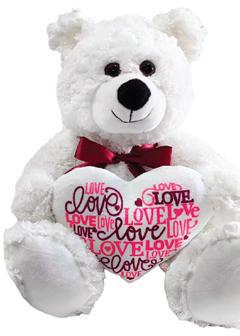 50212 White Jojo Bear with 3 hearts 11”